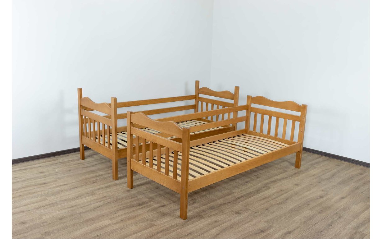 Дана модель є трансформером і може розкладатися на дві одноярусні, сходи можна розмістити як праворуч, так і ліворуч. Для збереження природних властивостей та захисту поверхні деревина покривається екологічно чистим сертифікованим матовим лаком. В основі ліжка знаходяться міцні дерев'яні ламелі. Можлива комплектація висувними ящиками.