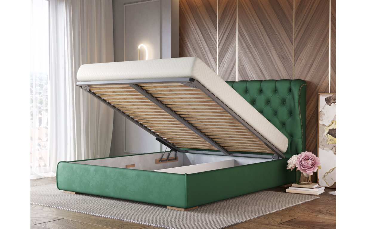 Кровать деревянная в мягкой оббивке Амстердам с подъемным механизмом ТМ Лев