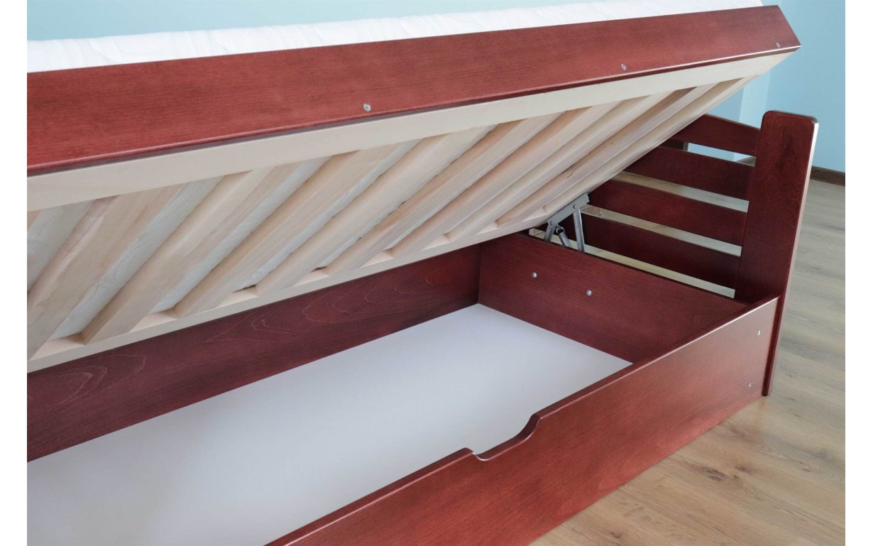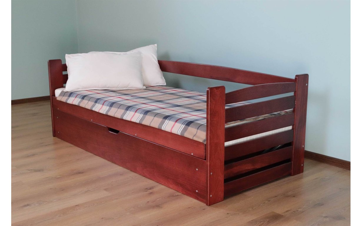 Древесина, из которой изготовлена кровать – массив бука. Основным преимуществом бука является поразительная устойчивость ко влаге и надёжность, сравнительно c другими материалами. Бук имеет высокие показатели прочности и долговечности. Огромный выбор расцветок древесины позволит подобрать цвет под мебель, которая у вас уже есть.