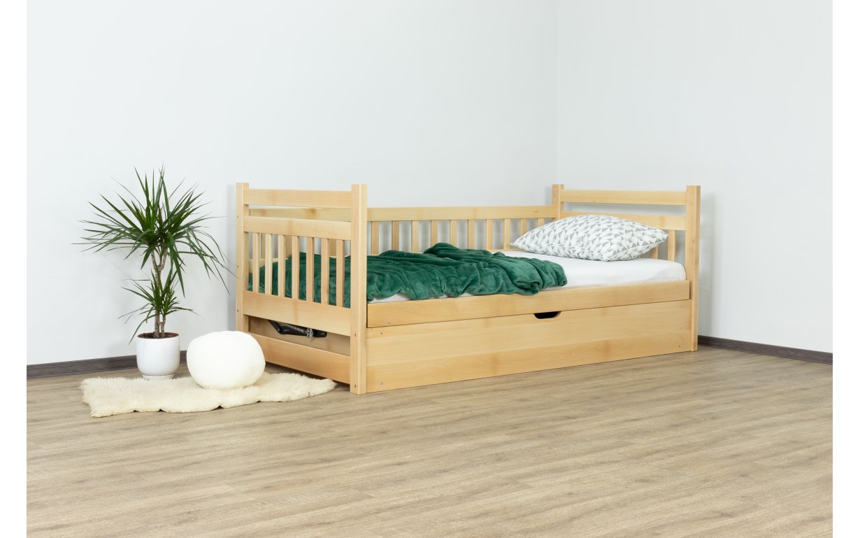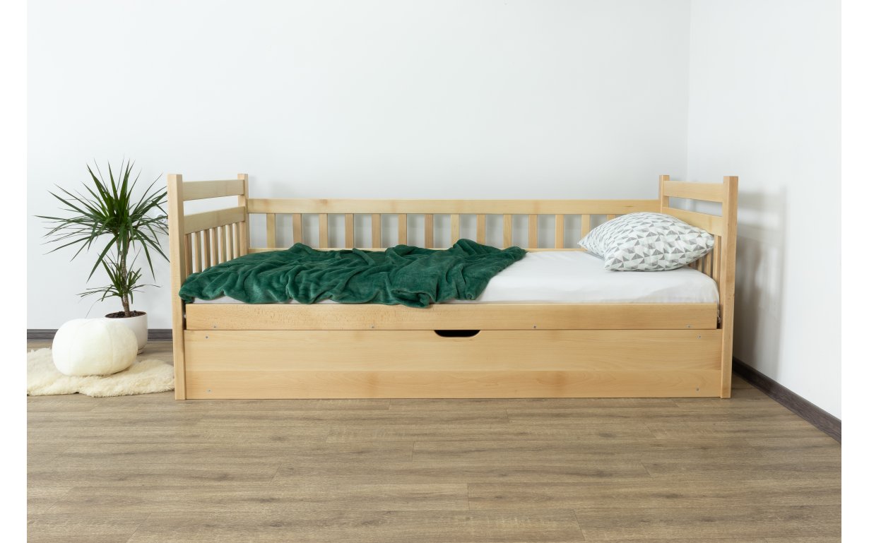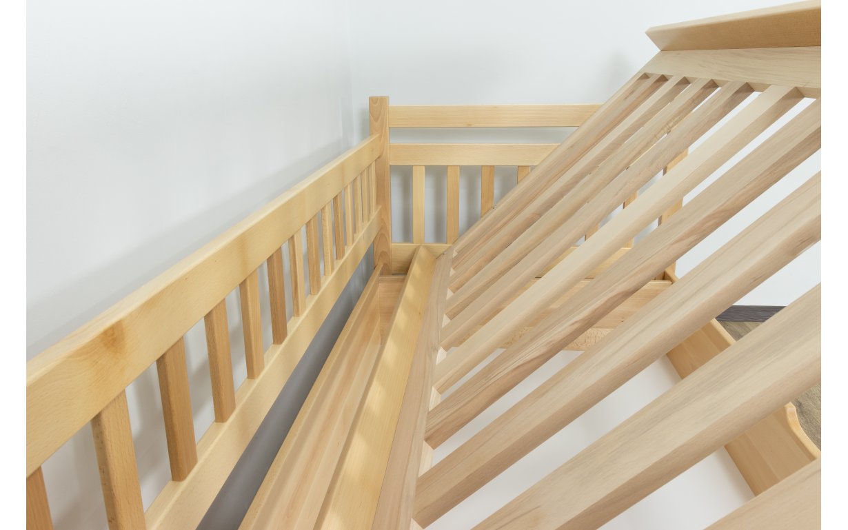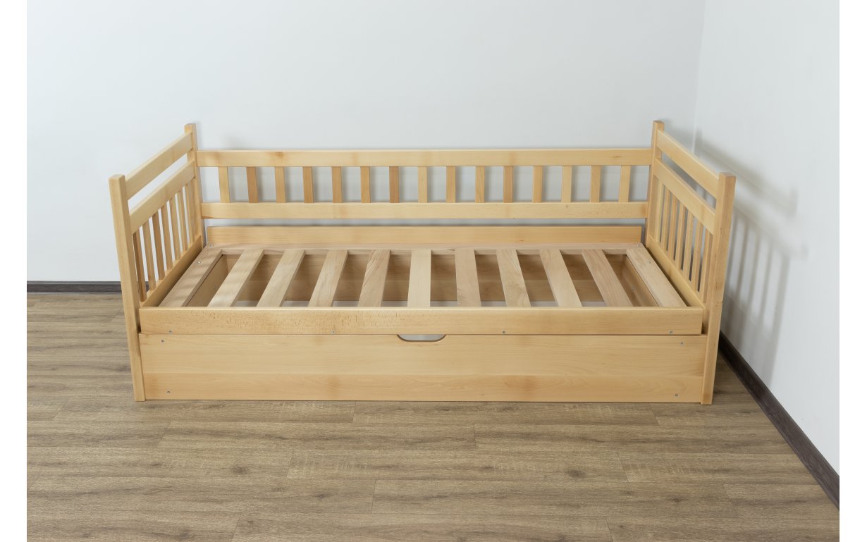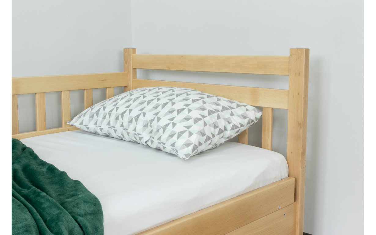 Древесина, из которой изготовлена кровать – массив бука. Основным преимуществом бука является поразительная устойчивость ко влаге и надёжность, сравнительно c другими материалами. Бук имеет высокие показатели прочности и долговечности. Огромный выбор расцветок древесины позволит подобрать цвет под мебель, которая у вас уже есть.