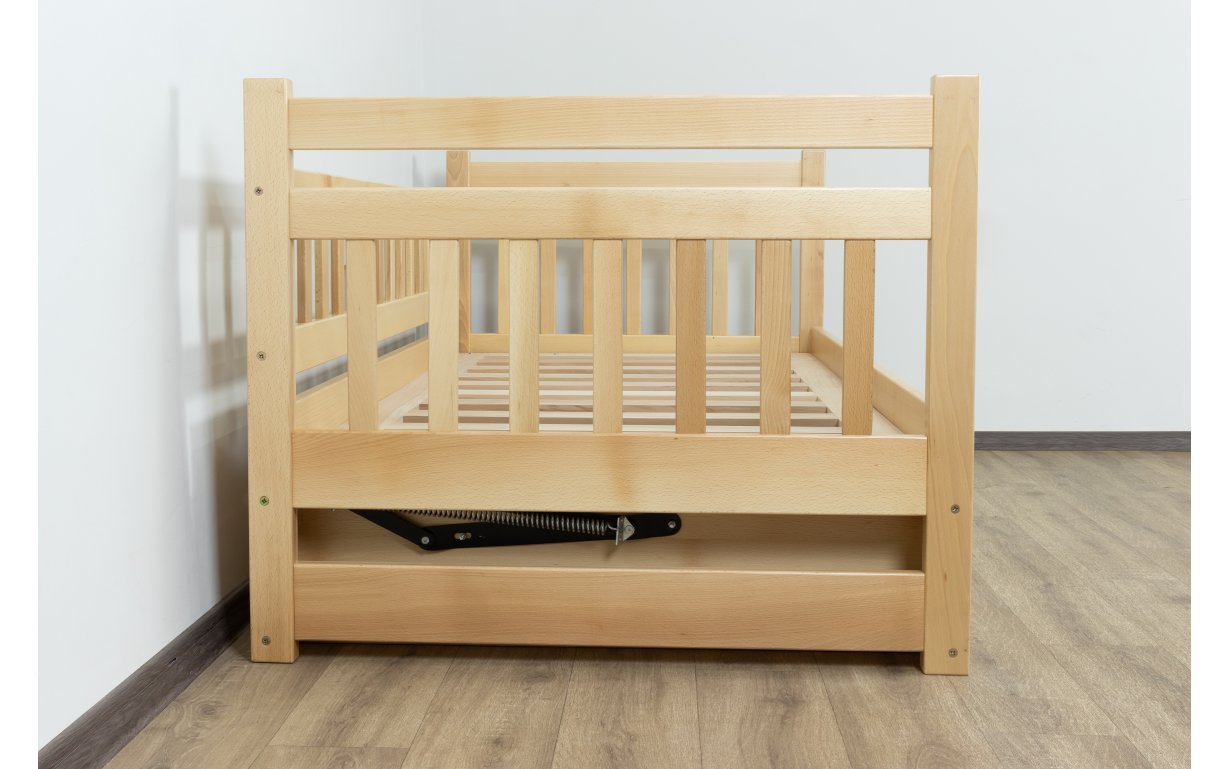 Кровать Молли с механизмом – это уютная детская кровать, которая подарит вашему малышу крепкий сон и надежную защиту. Данная кровать завоевала сердца наших клиентов тем , что имеет подъемный механизм , это очень практично и функционально , так как вы сможете сэкономить пространство в комнате. Производитель ТМ Дримка использует в своем производстве только экологически чистый массив дерева бук, который характеризуется как прочный, надежный, безопасный, долговечный. Покрытие для своей продукции ТМ Дримка использует европейского качества, которые безопасны как для ваших детей, так и для родителей.